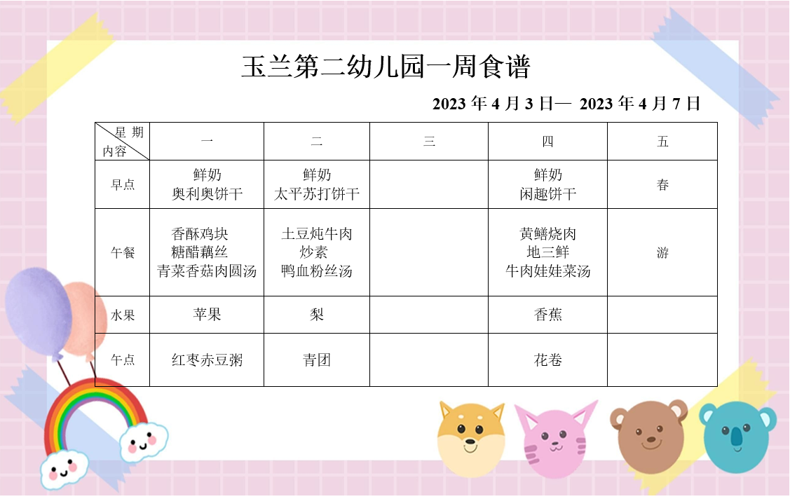 一周食谱(2023.4.3-4.7)