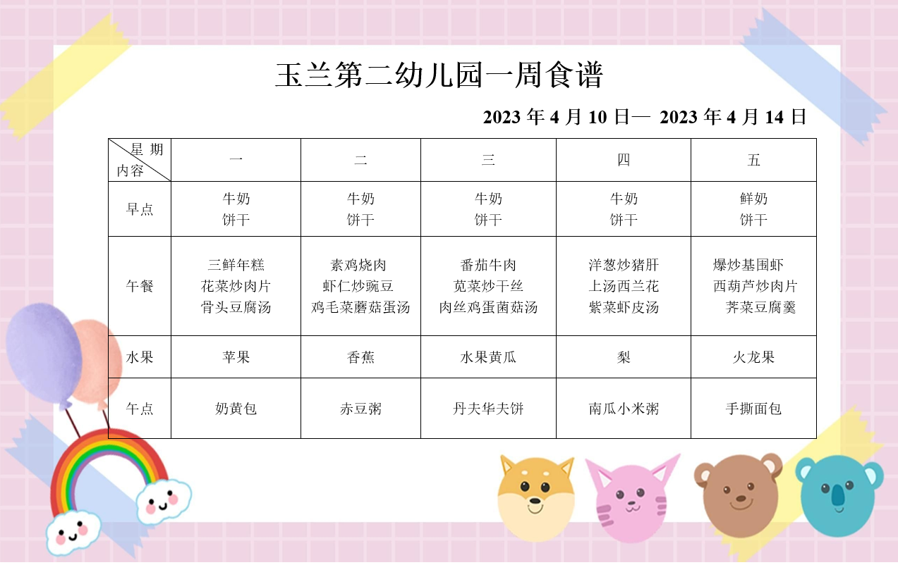 一周食谱(2023.4.10-4.14)