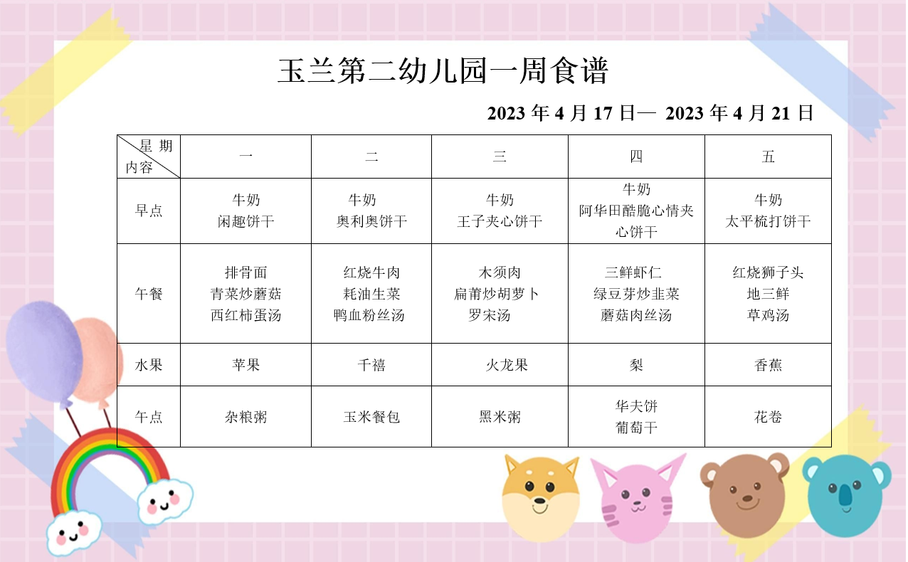 一周食谱(2023.4.17-4.21)