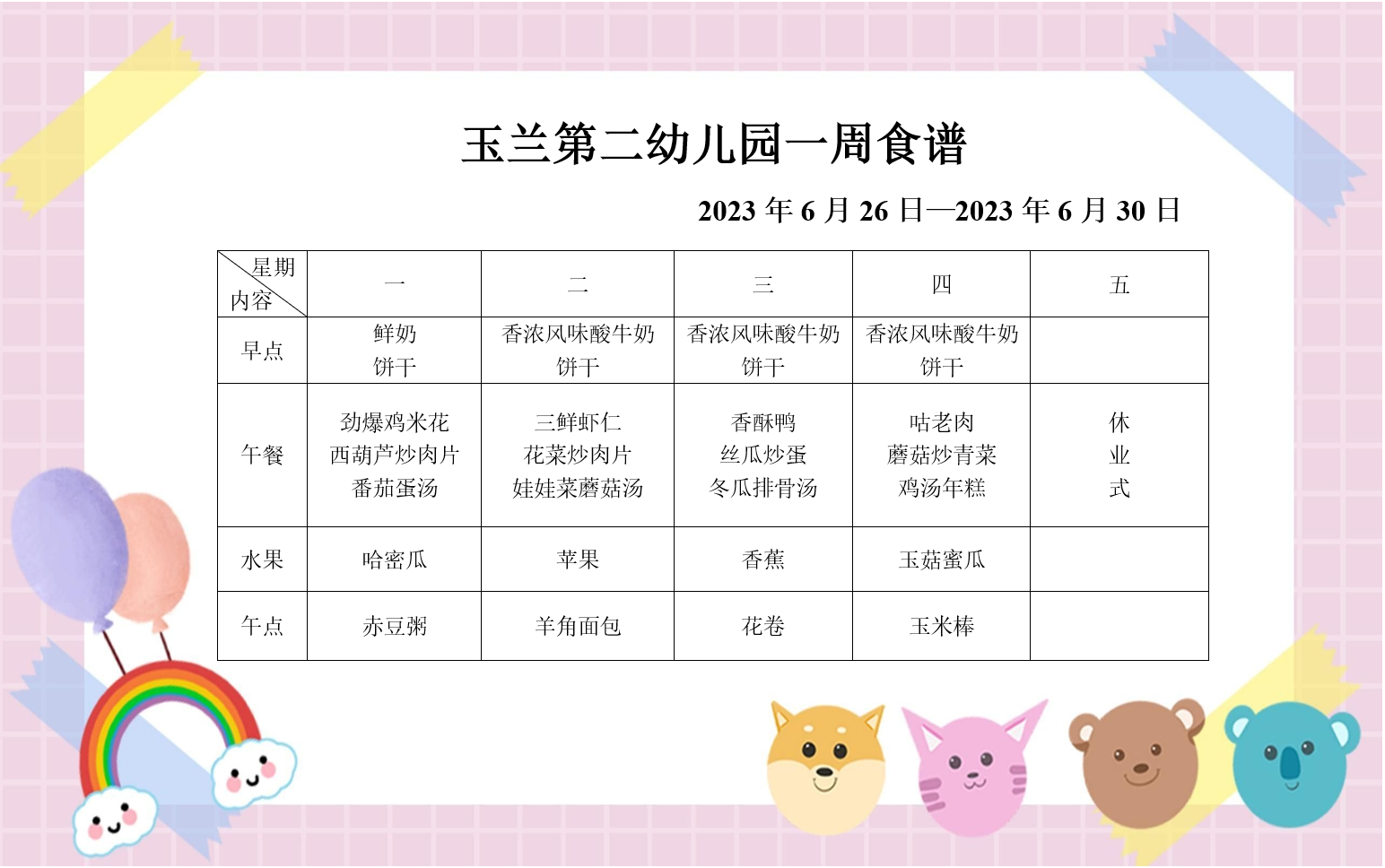 一周食谱(2023.6.26-6.30)