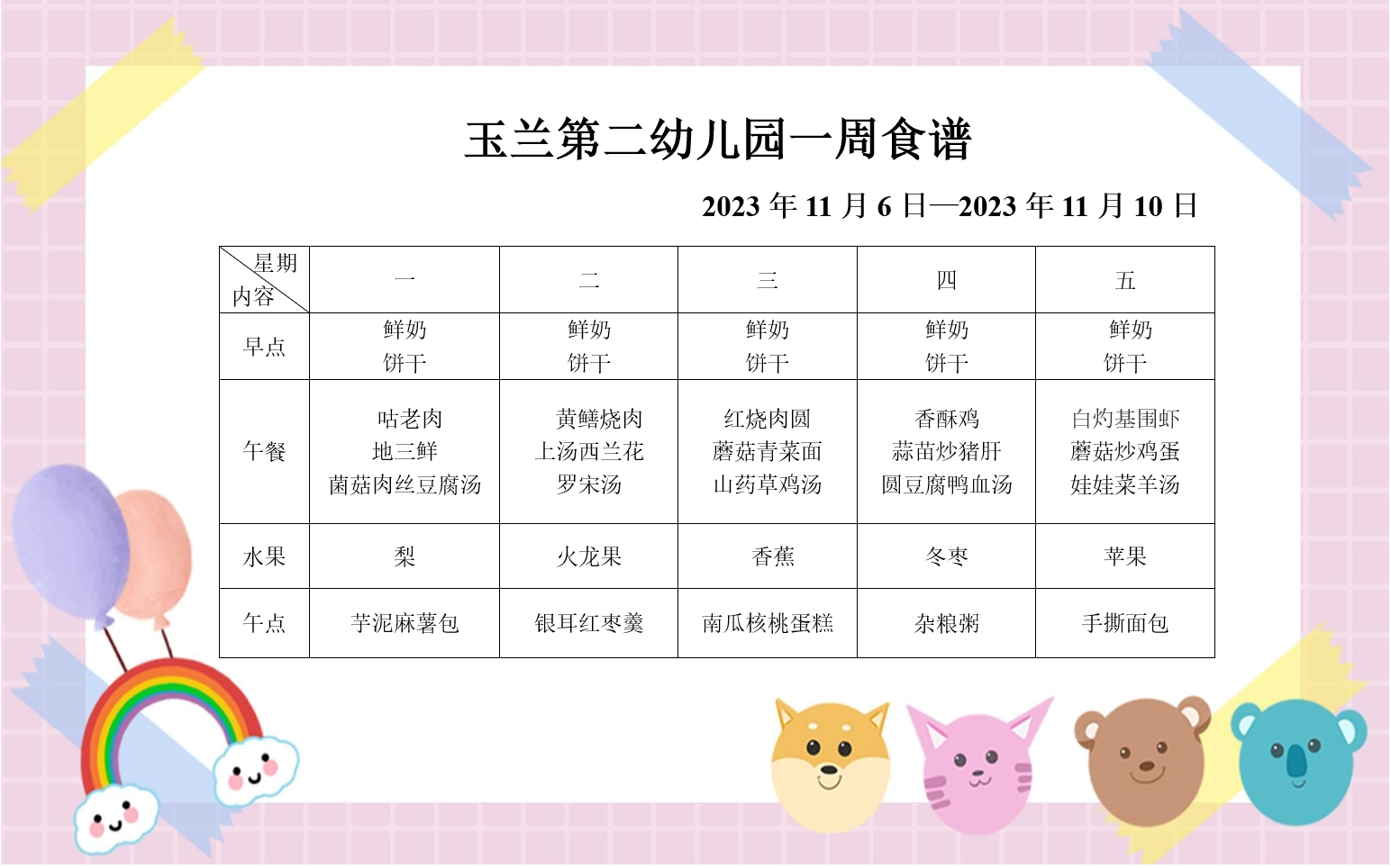一周食谱(2023.11.6-11.10)