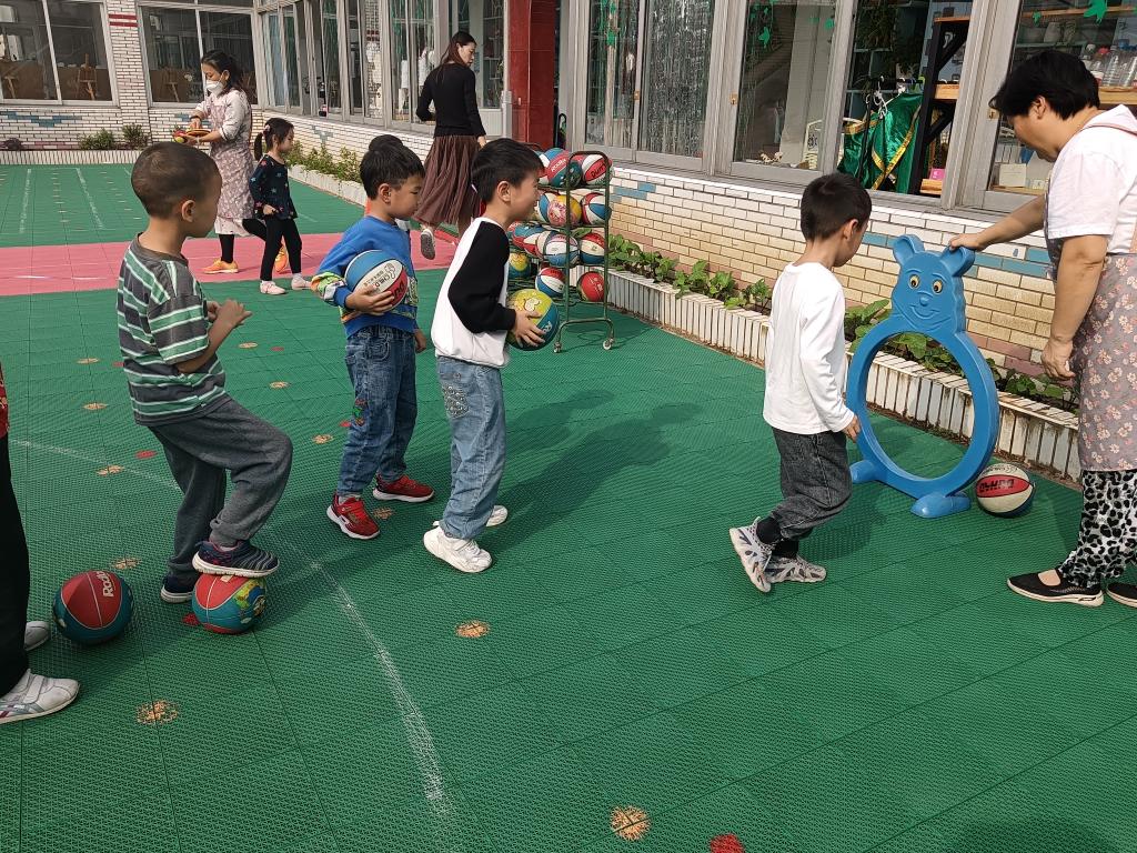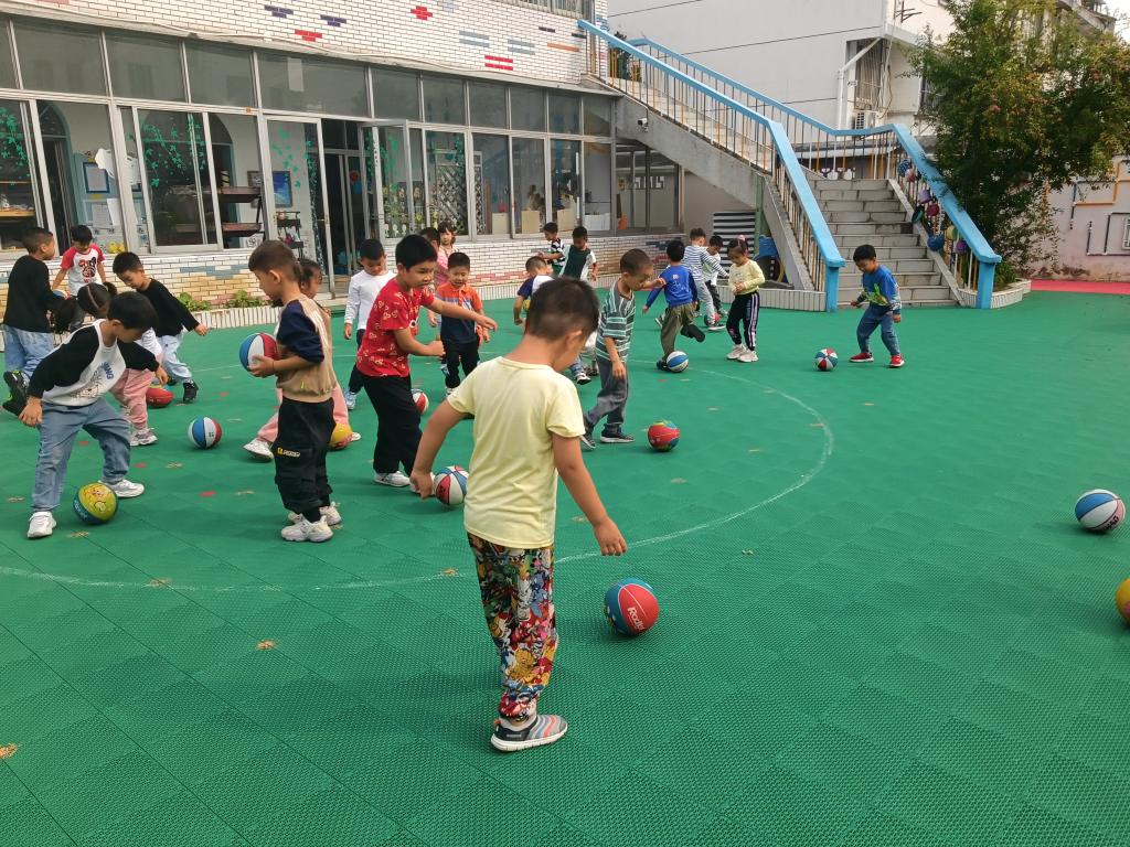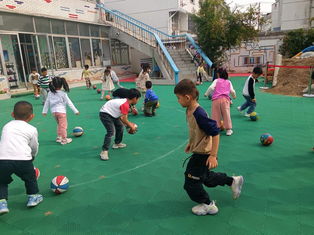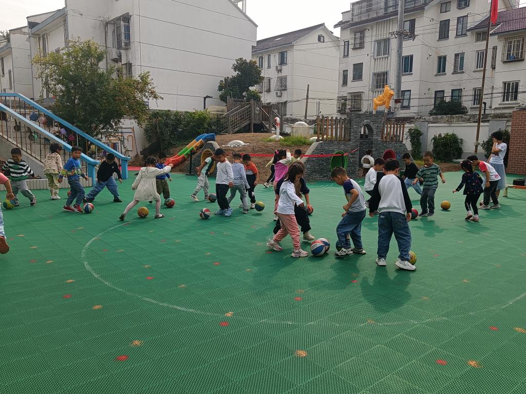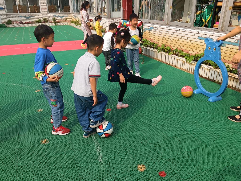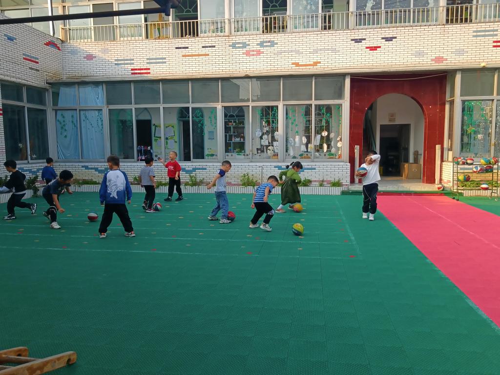 在活动中练习控球、传球、射门等简单的足球基本技巧,发展大肌肉动作。增强动作的灵活性、协调性。感受足球运动的合作性及竞争性。