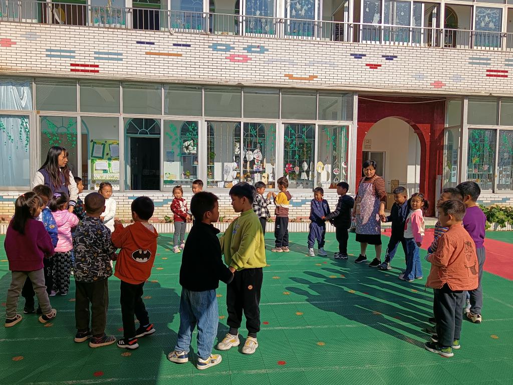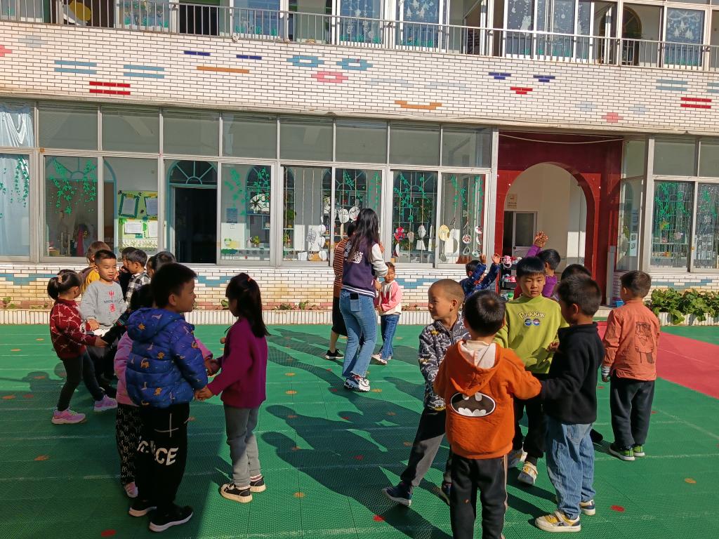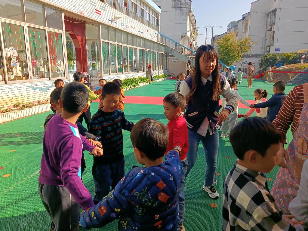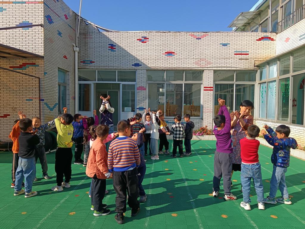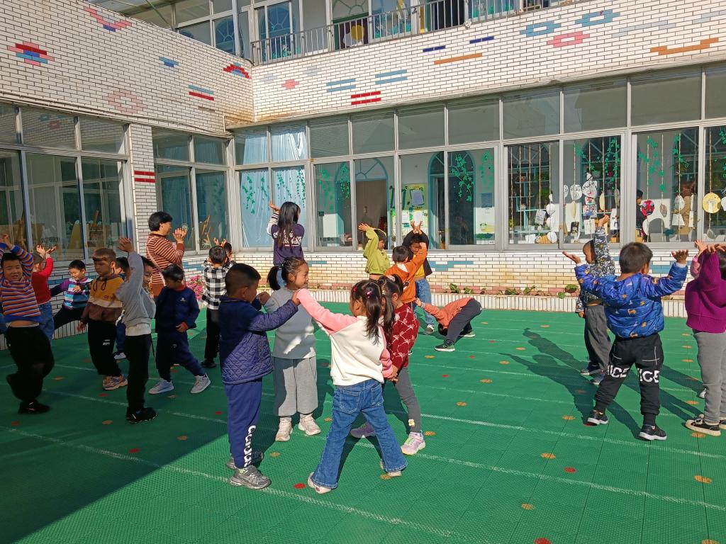 孩子们能在老师儿歌的指令提示下自觉按规则进行游戏,游戏中体现了与同伴协调进退,良好合作的氛围。