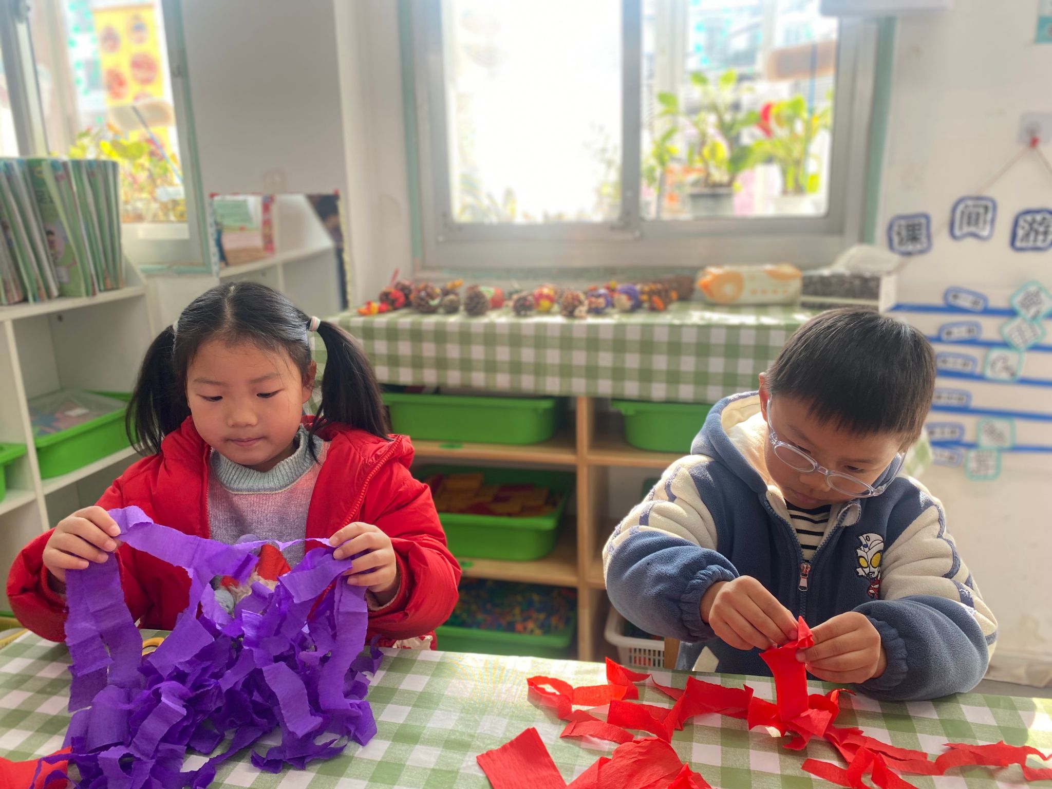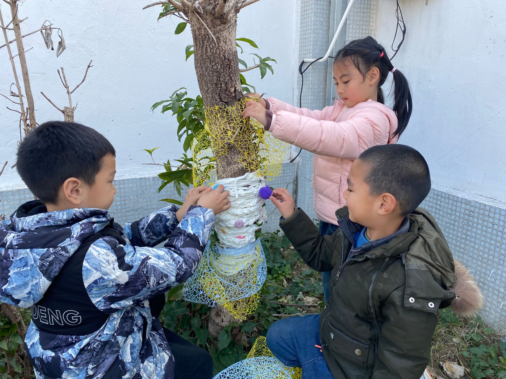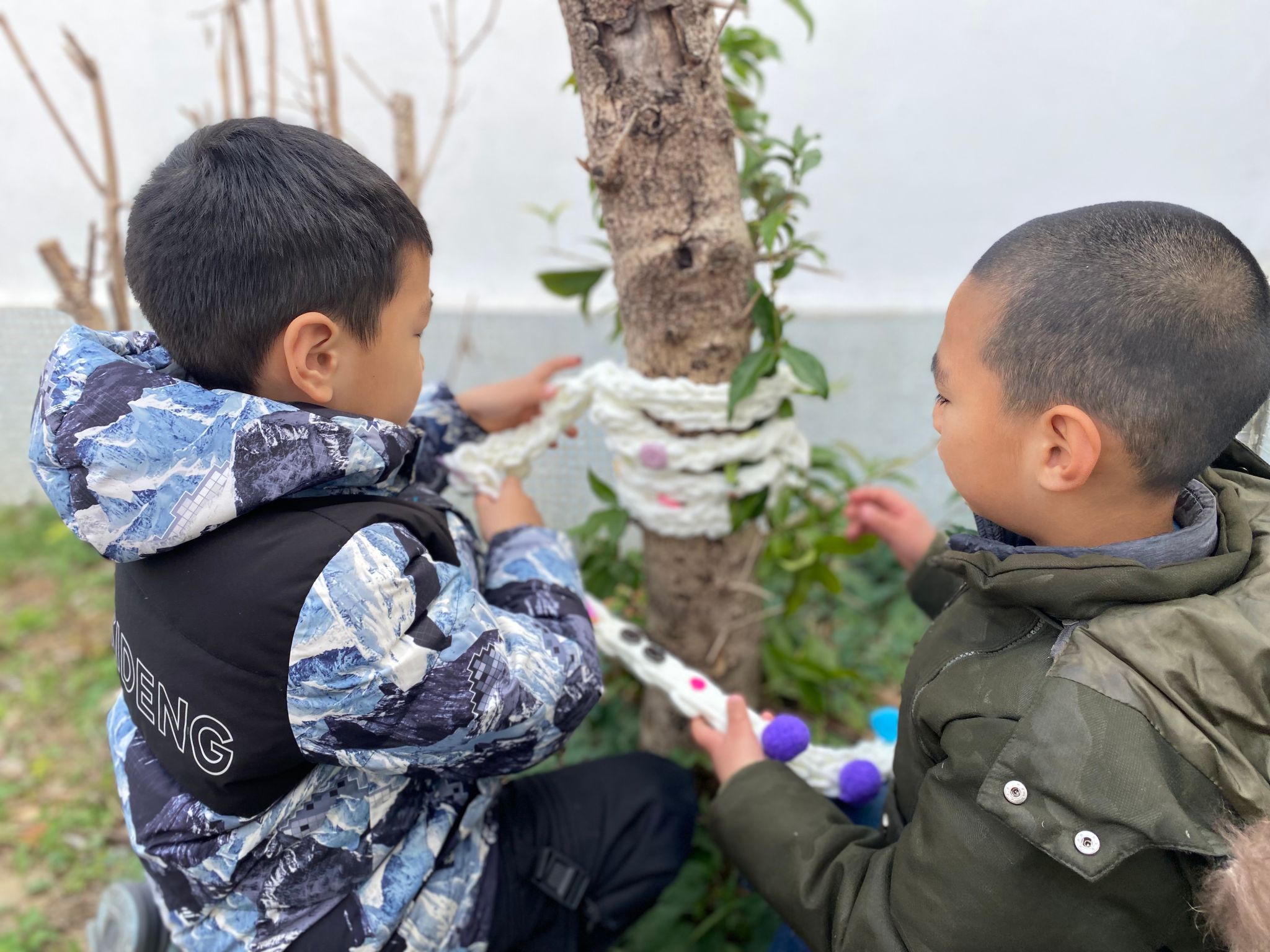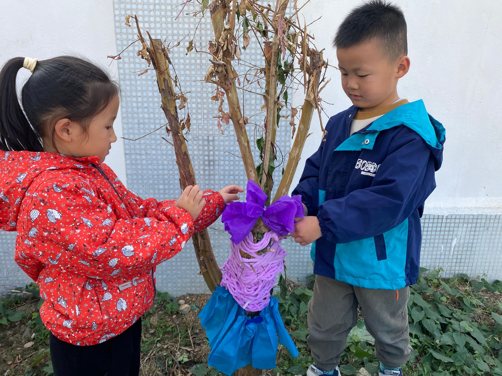 小朋友们能综合运用彩纸、彩纱、毛根、自然材料等,通过剪贴、绘画、装饰等方式为“小树”制作一件创意“新衣”,感受艺术创作的乐趣。