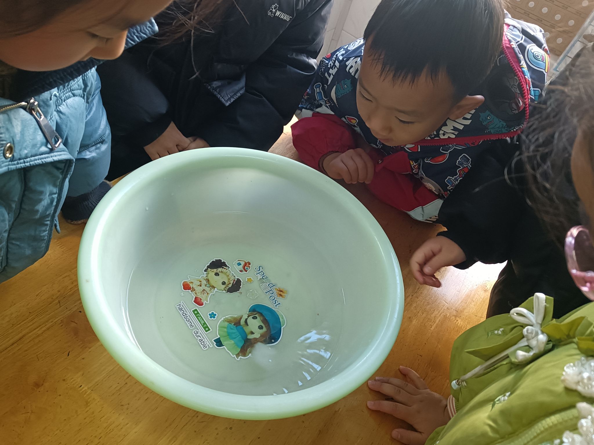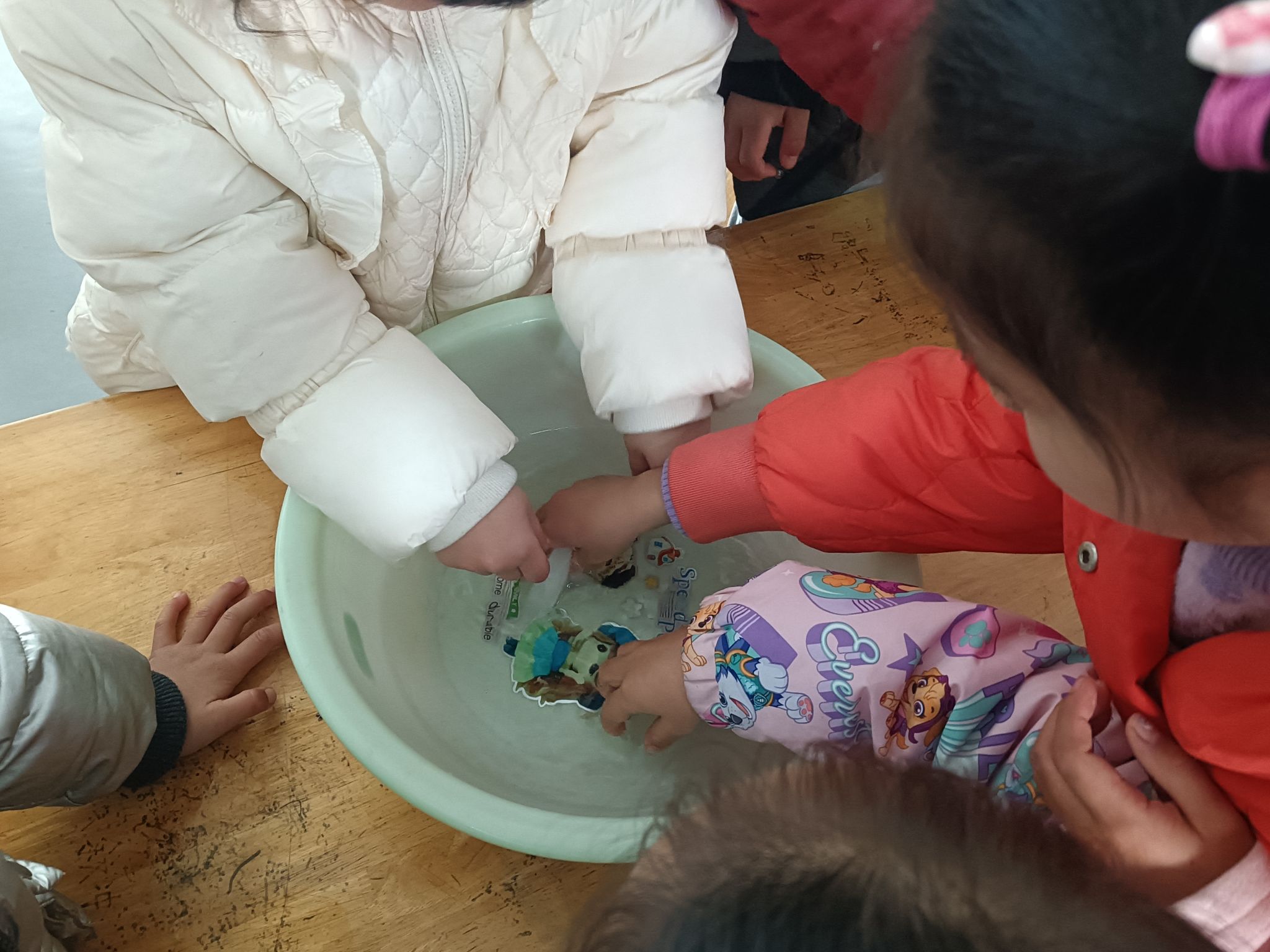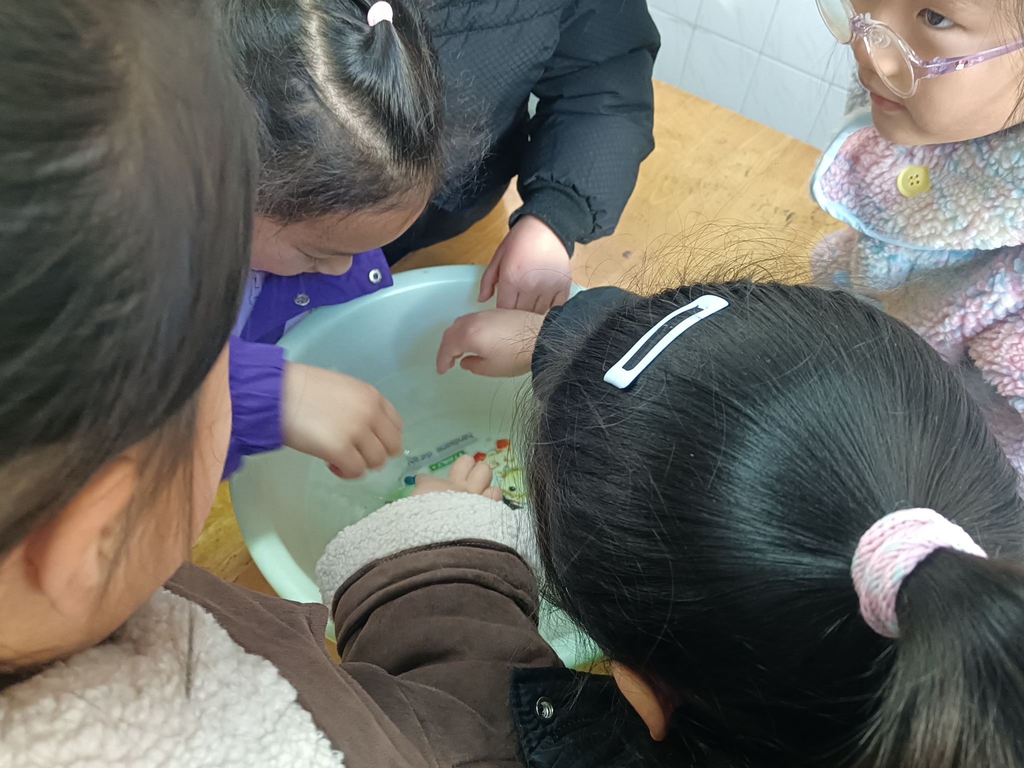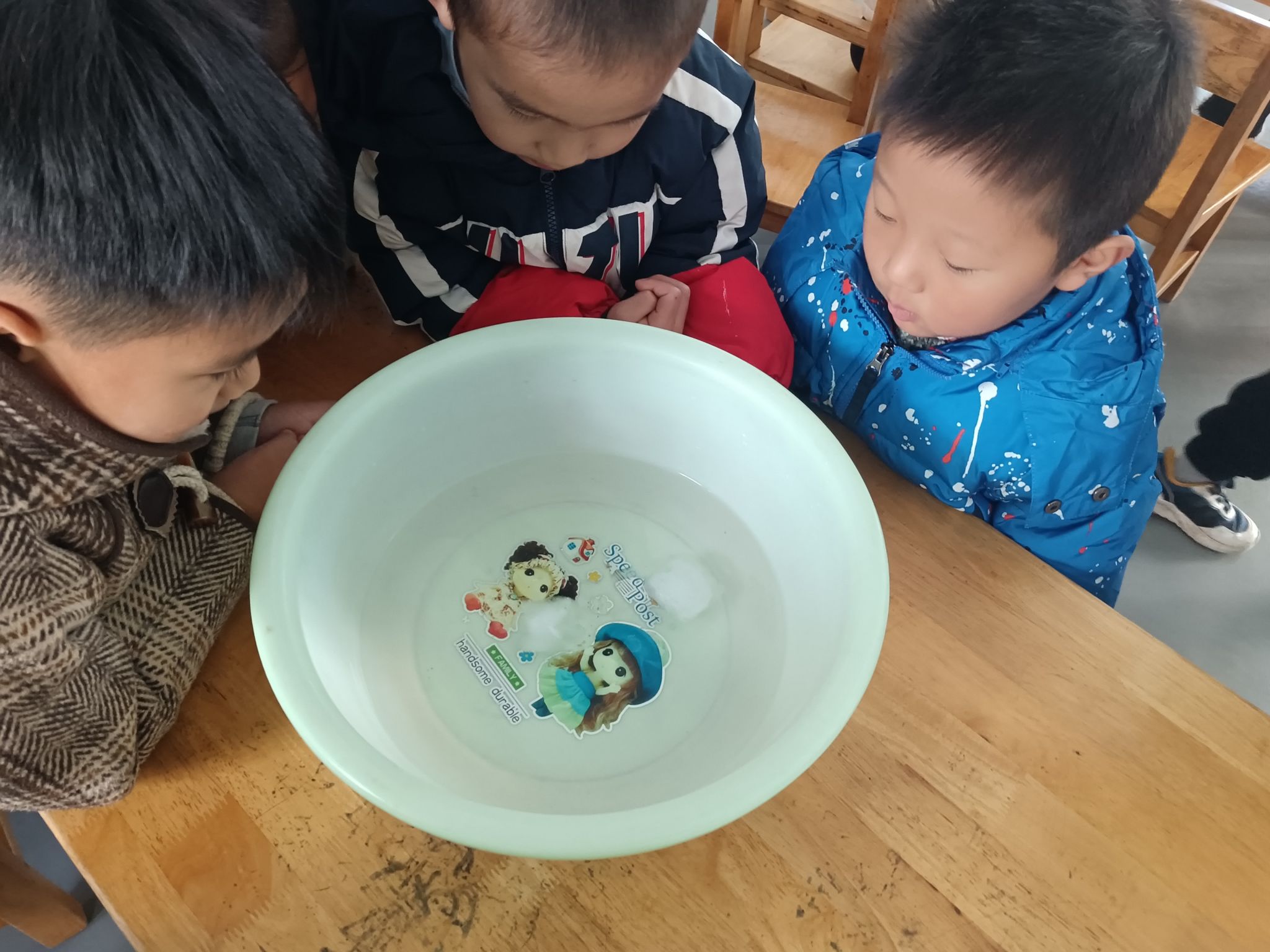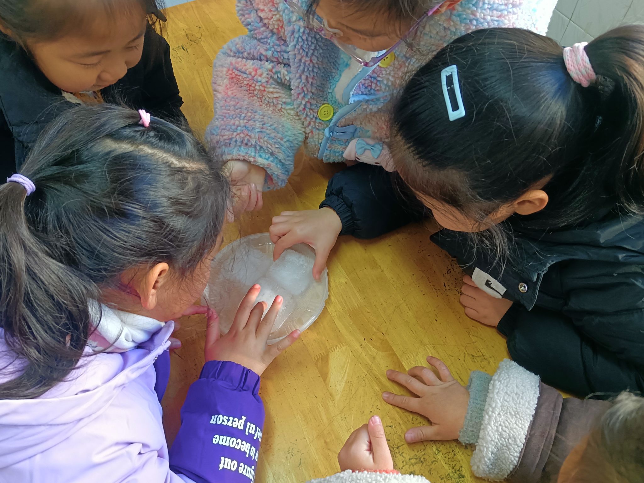 这两天,天气降温,已到零下几度,孩子们在幼儿园里发现很多处结冰的现象,根据孩子们的探索需求,我们带着孩子做一做化冰实验,了解冰的融化过程,观测并记录冰块融化的现象,在探究的过程中养成在实验观察活动中认真、细致的态度,体验科学活动的乐趣。