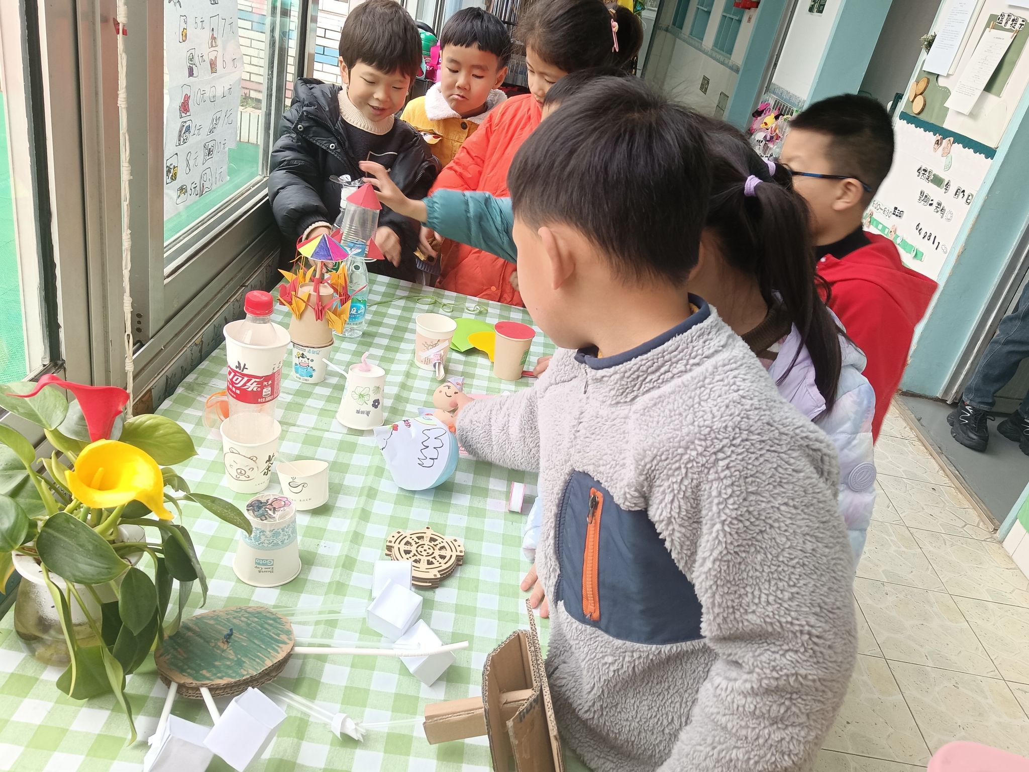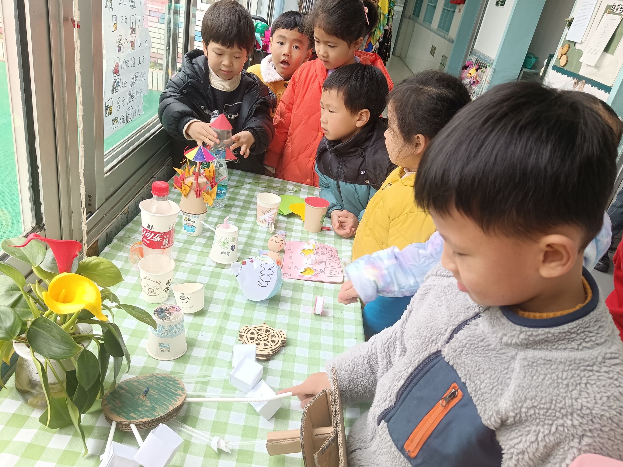 在欣赏“鲁班的故事”后孩子们感受到了发明家都有善于观察、爱动脑筋、敢于尝试的人物形象特征,也产生了向鲁班学习的愿望。他们自制了科学小玩具和大家一起分享。更激励孩子们从小爱动脑,多发现问题,提出问题,还要多动手做做、试试。
