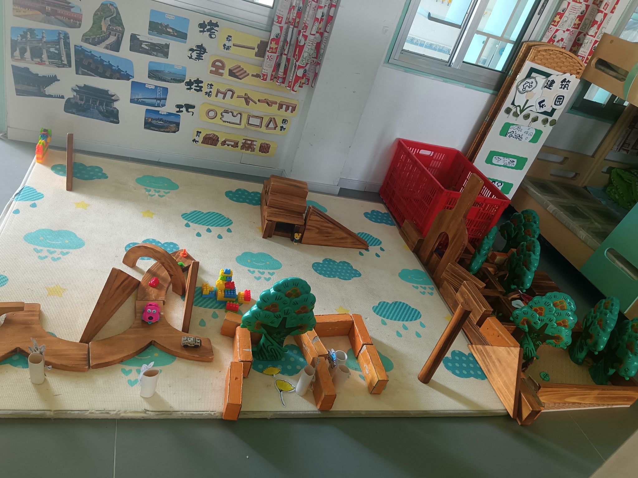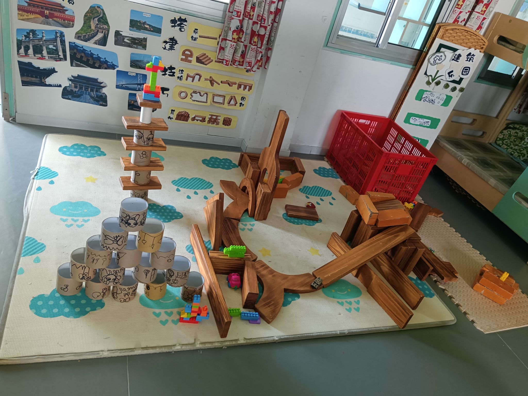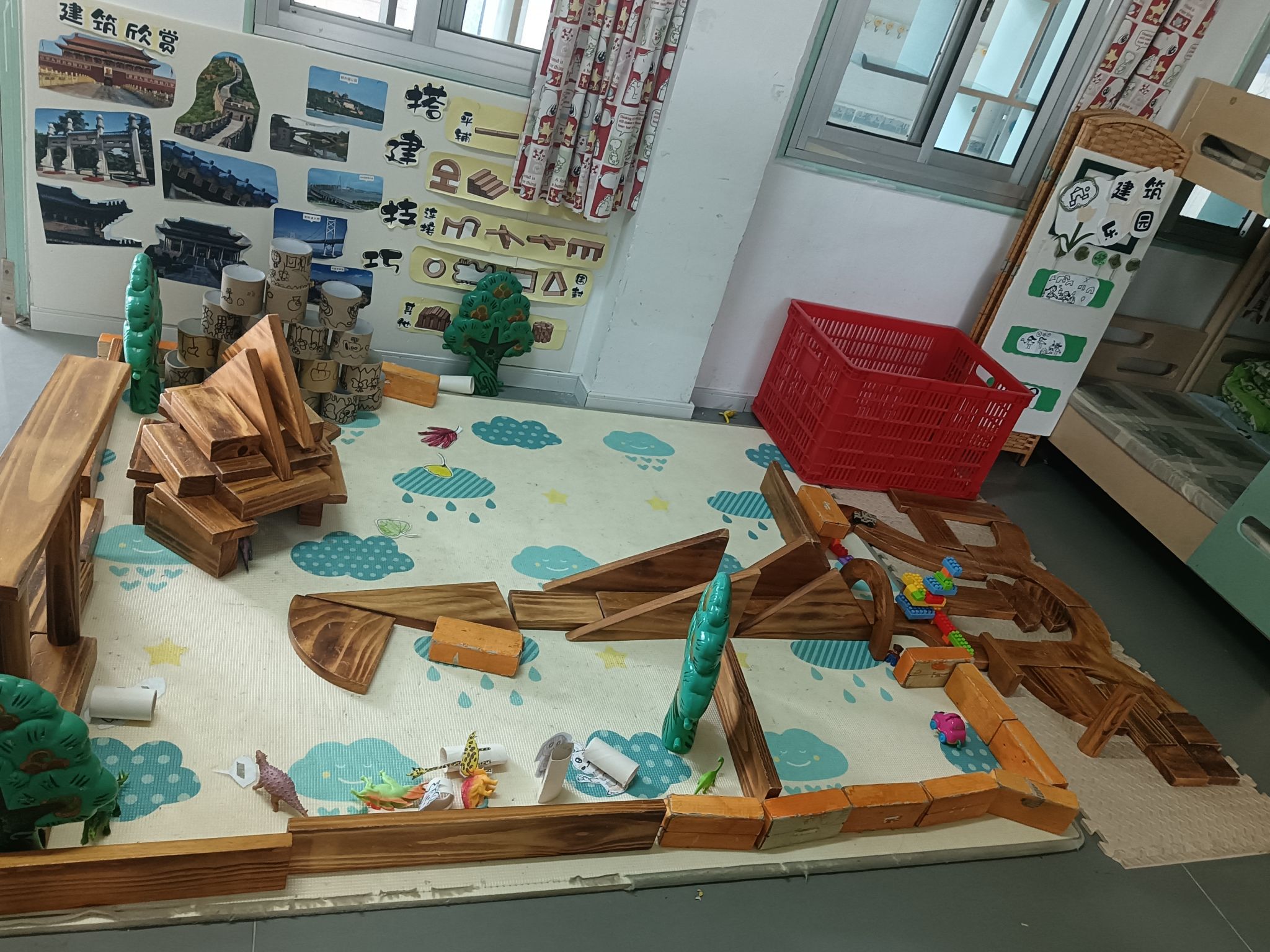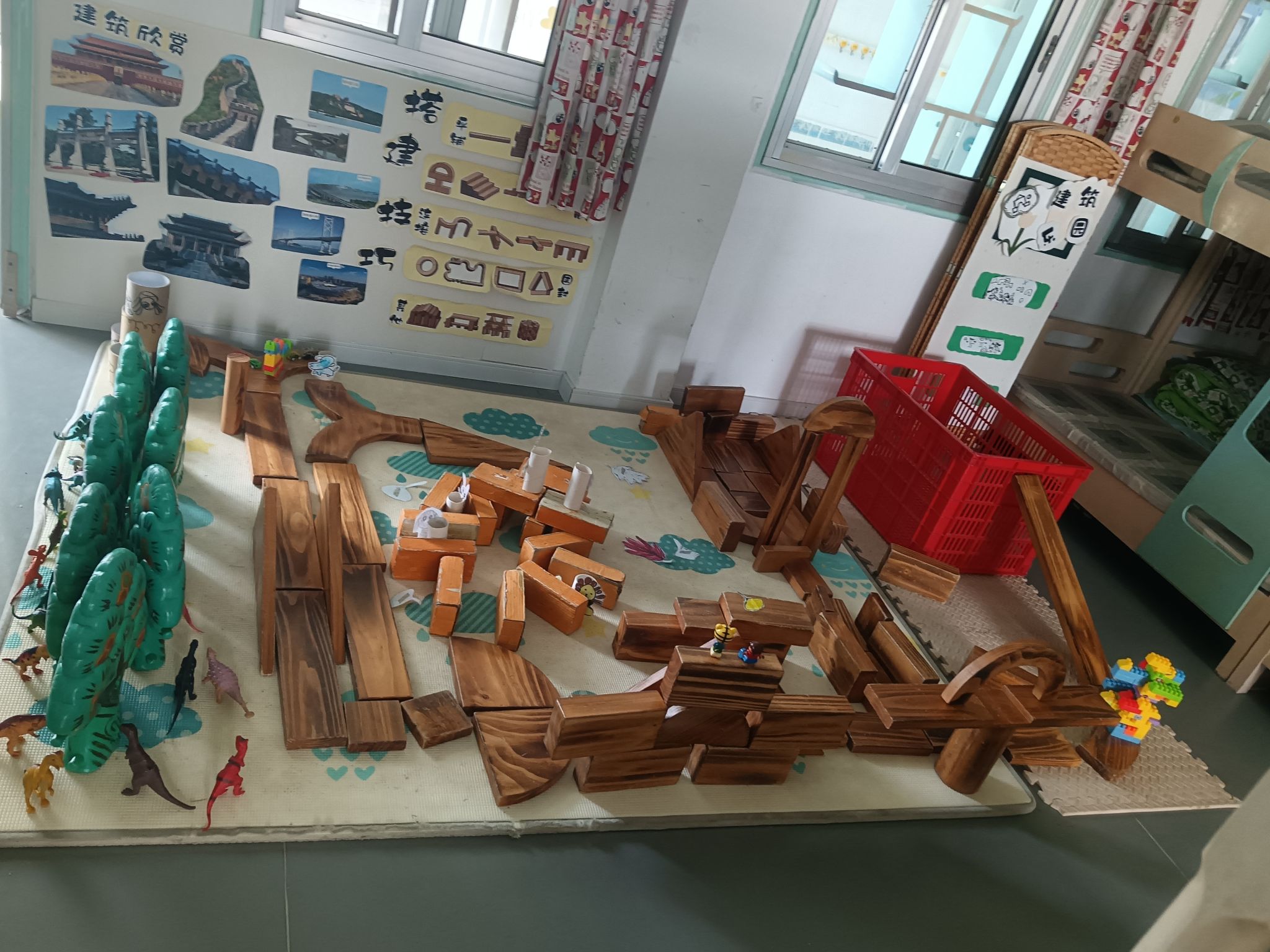建构区是孩子们最喜欢选择的区角,在这里,他们可以尽情发挥他们的想象,一起讨论、商量、设计出大家共同创想的作品,每次游戏结束,孩子们总要叫我拍下照片,小小的建构区,大大的创想地......