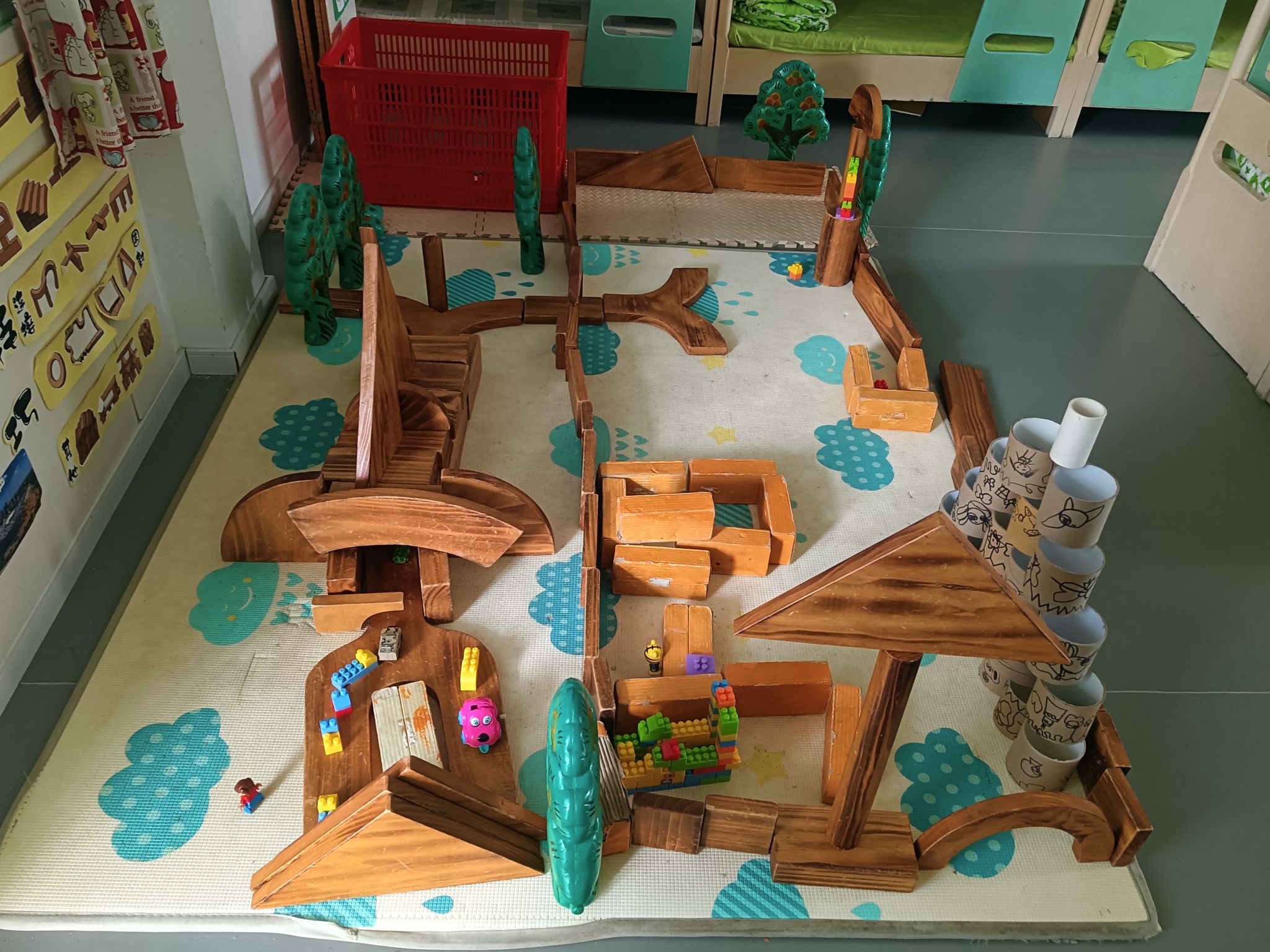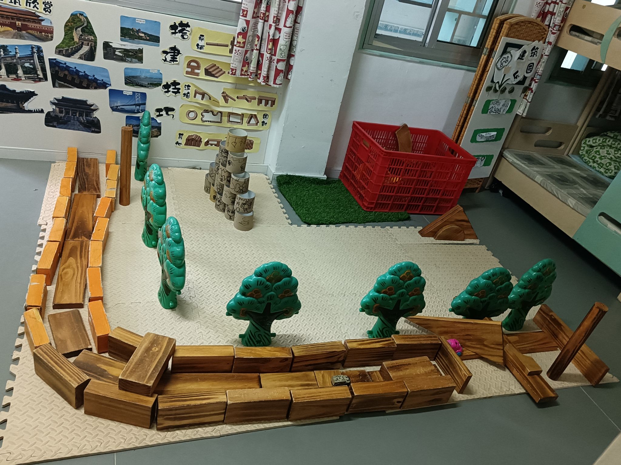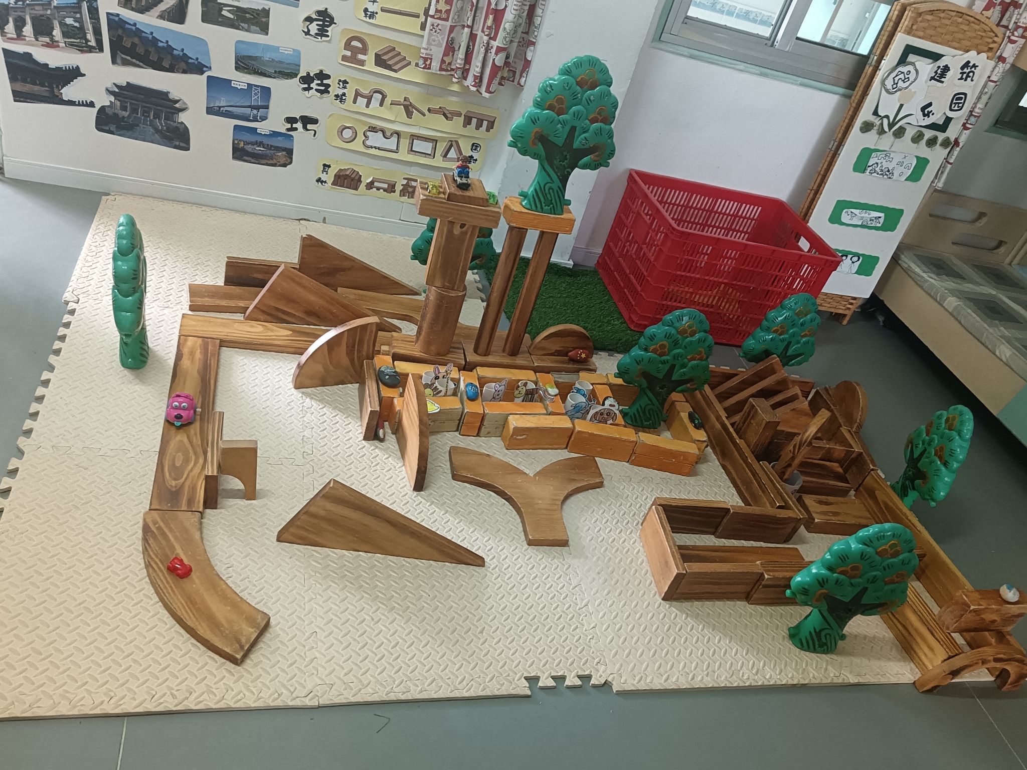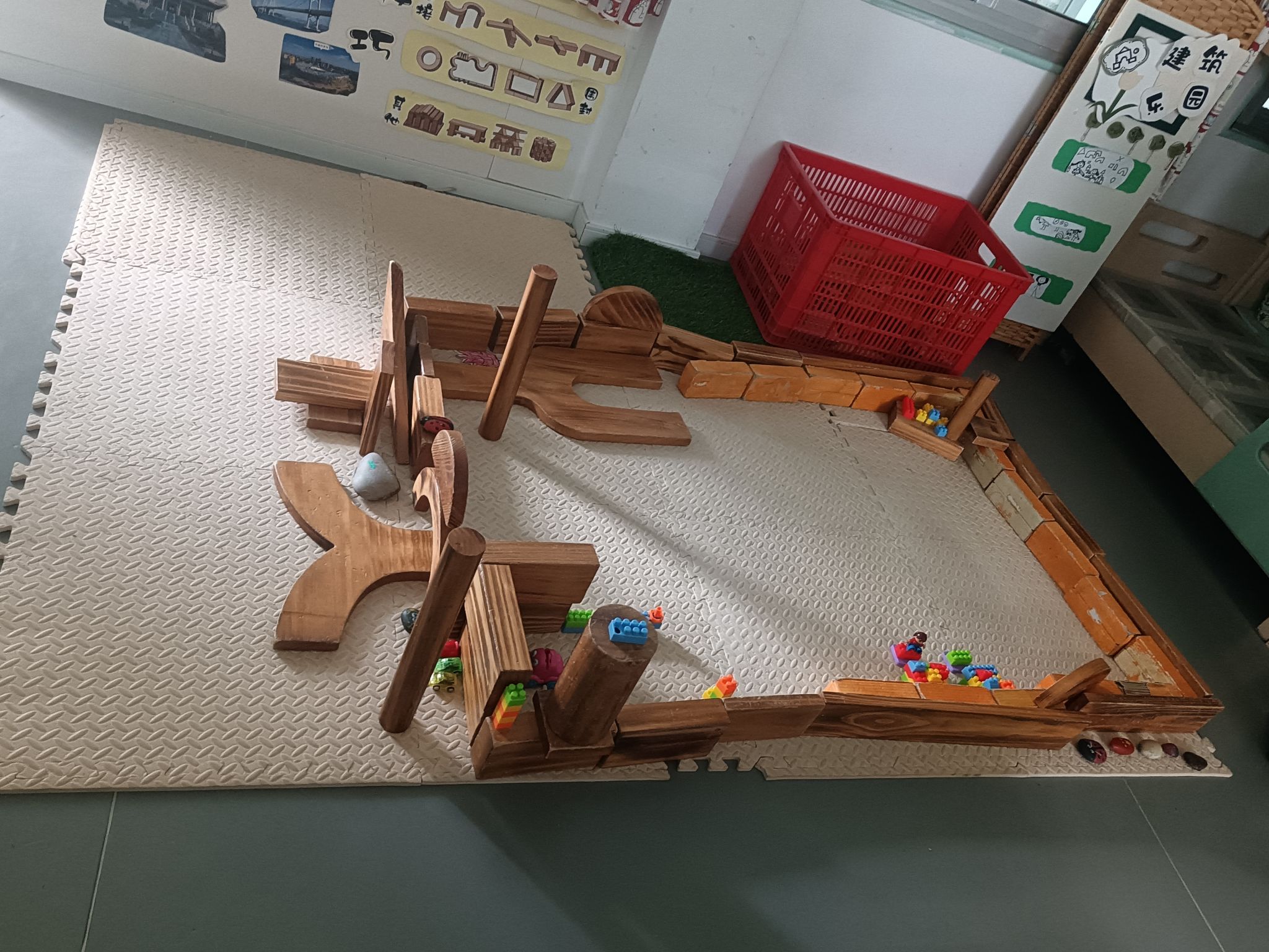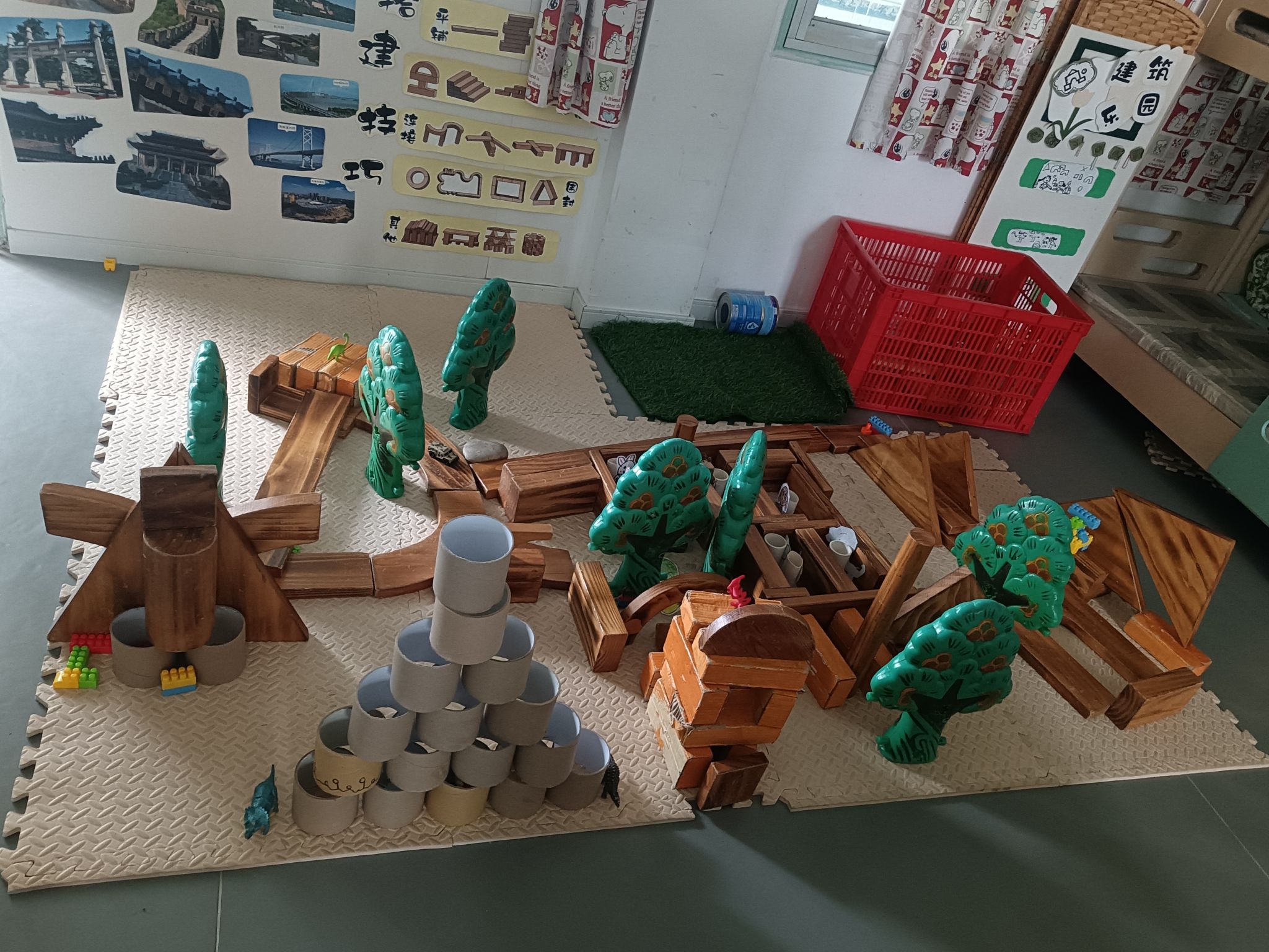 建构区是孩子们最喜欢选择的区角,在这里,他们可以尽情发挥他们的想象,一起讨论、商量、设计出大家共同创想的作品,每次游戏结束,孩子们总要叫我拍下照片,小小的建构区,大大的创想地......
