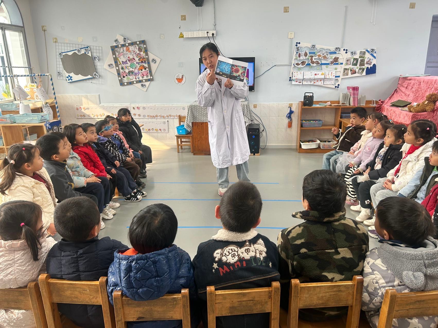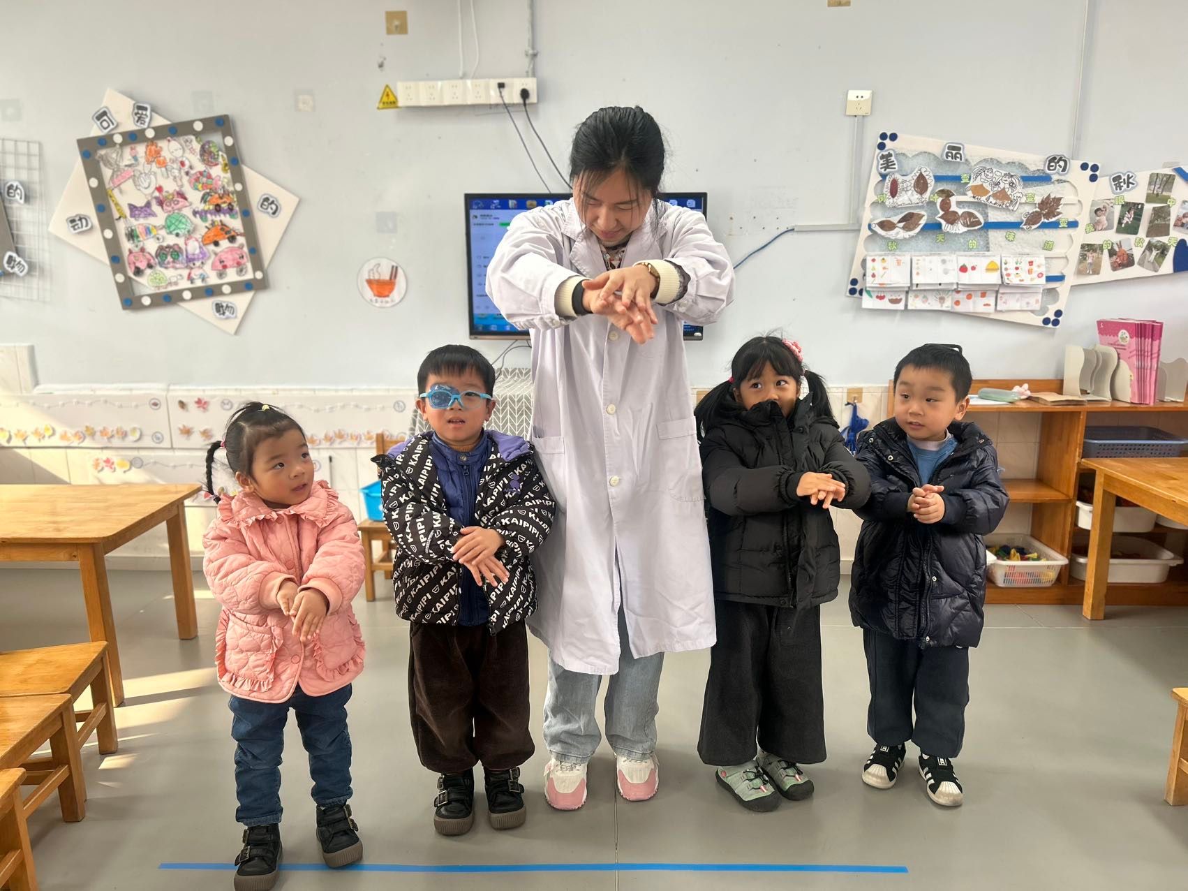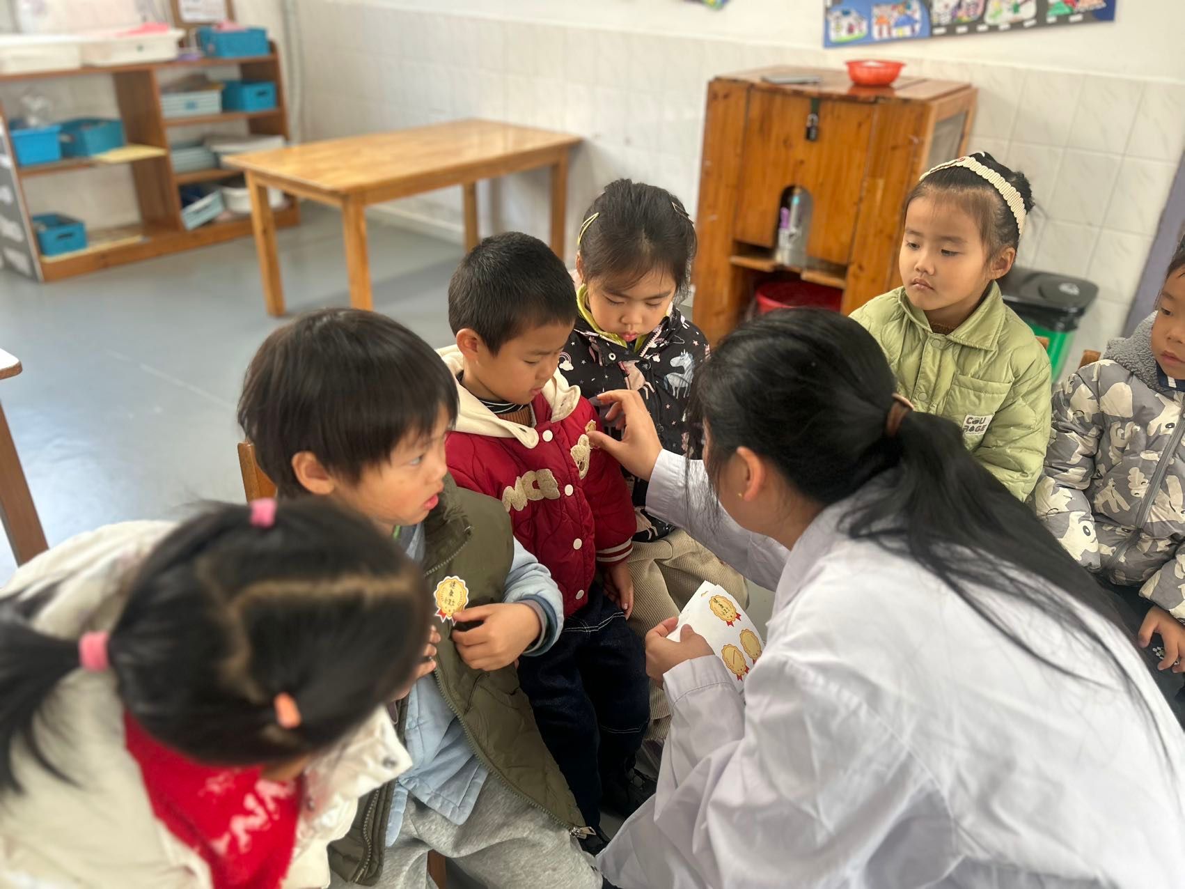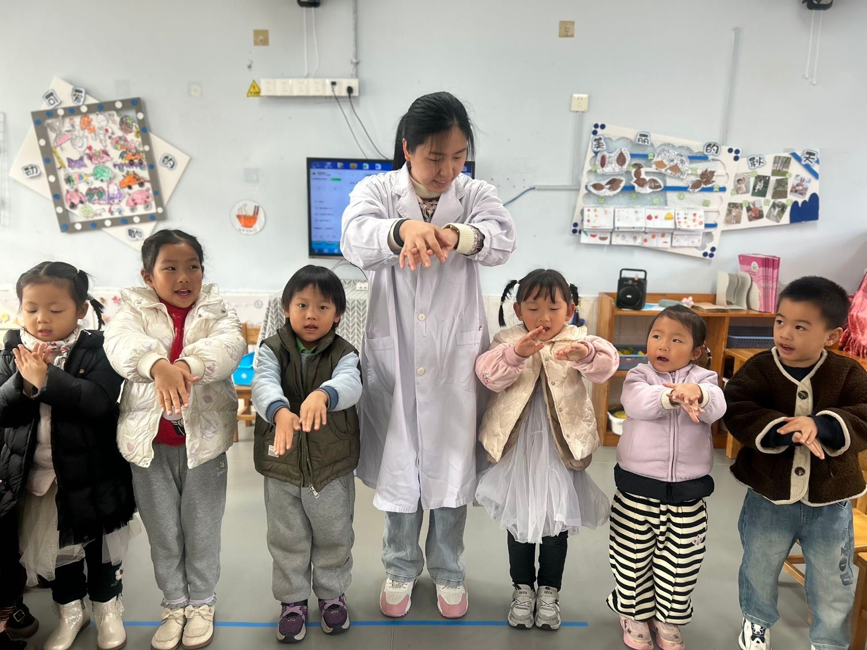 今天的活动中我们邀请了斐斐的妈妈(医院护士)来给小朋友们讲解专业的健康知识,通过有趣的情境,让孩子们掌握了打败细菌病毒方法,每次洗手要使用七步洗手法,遇到咳嗽打喷嚏时要用纸巾或者手肘来挡一下,孩子们都学的超认真哦,最终获得健康小卫士称号!