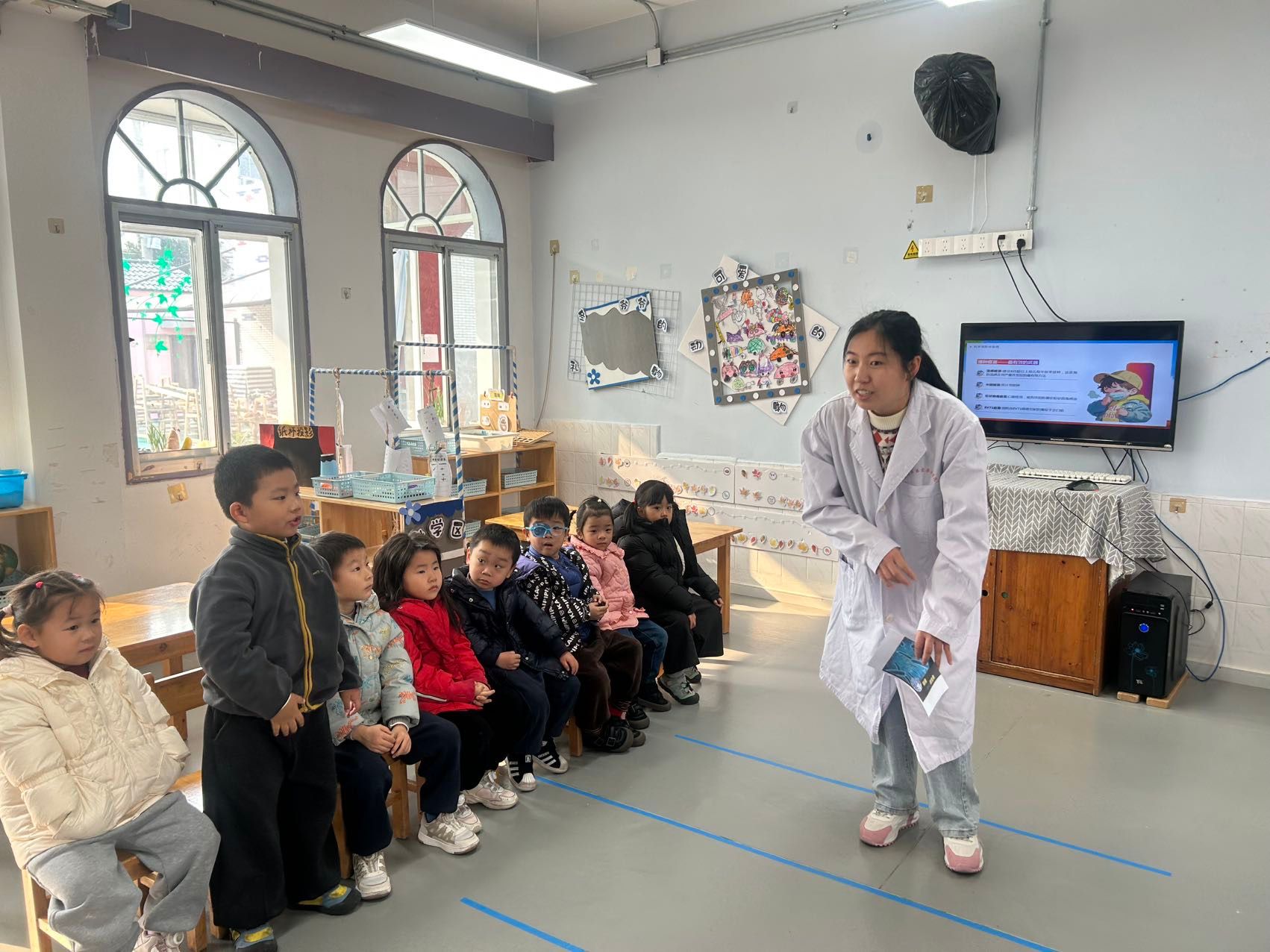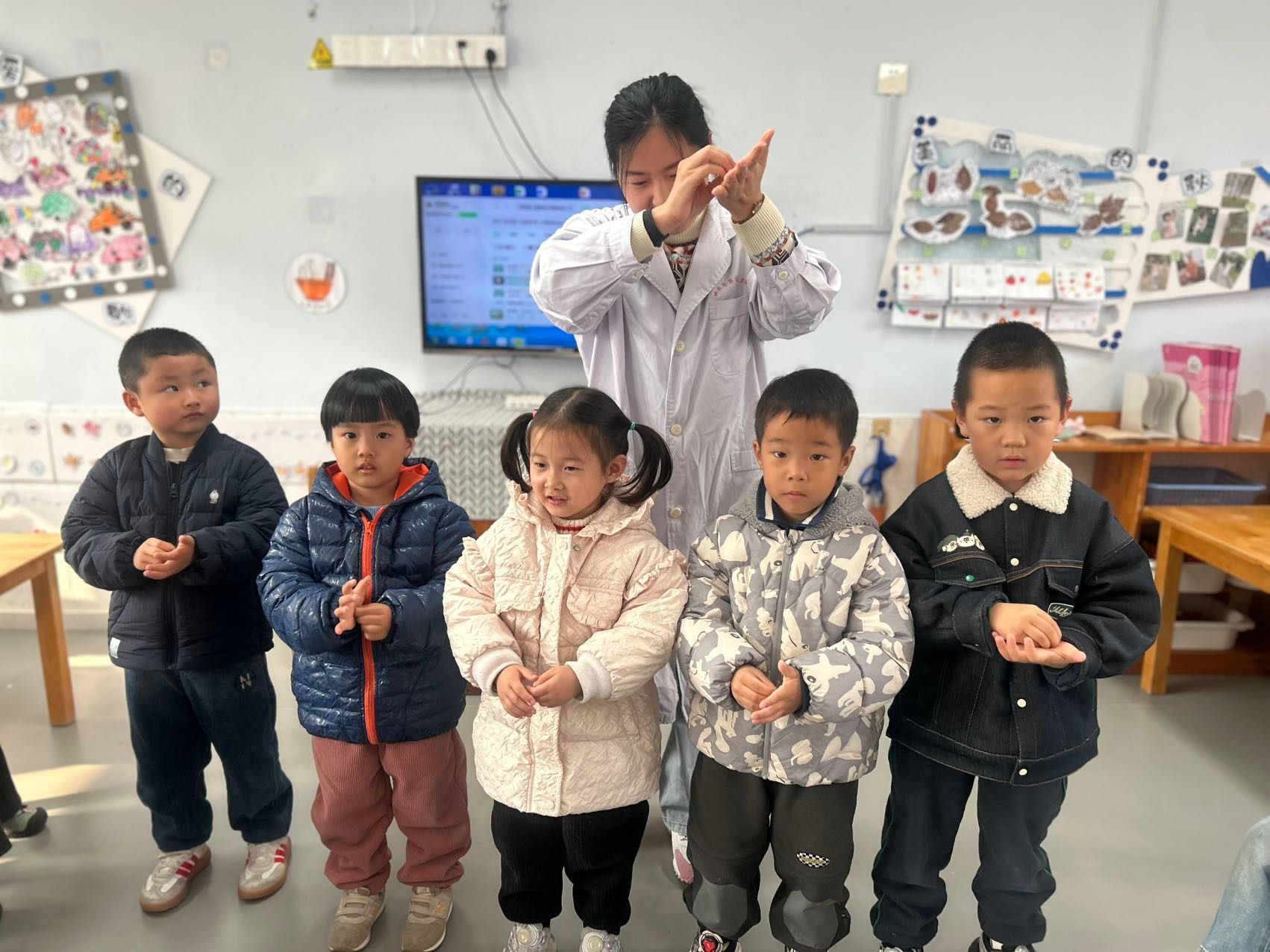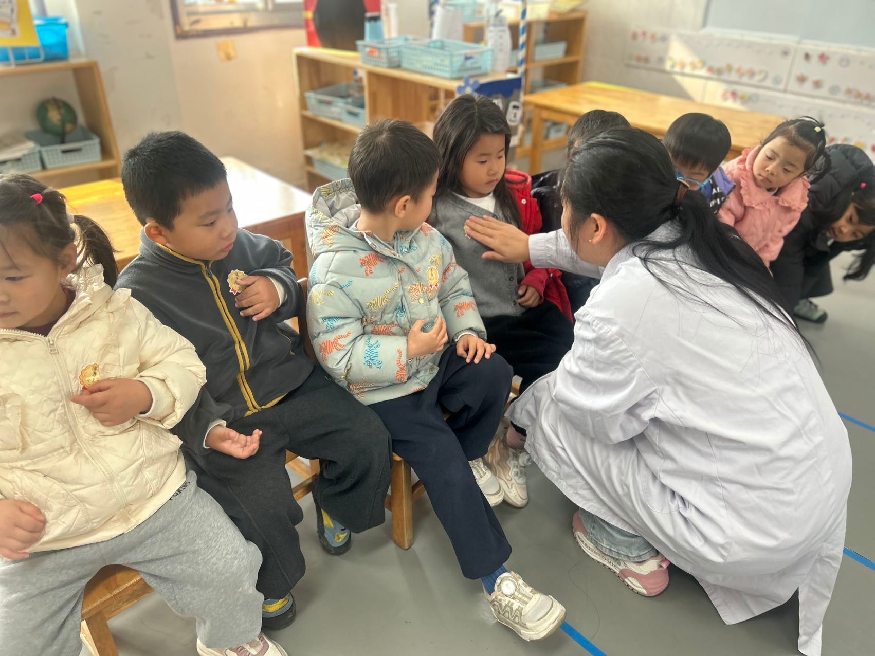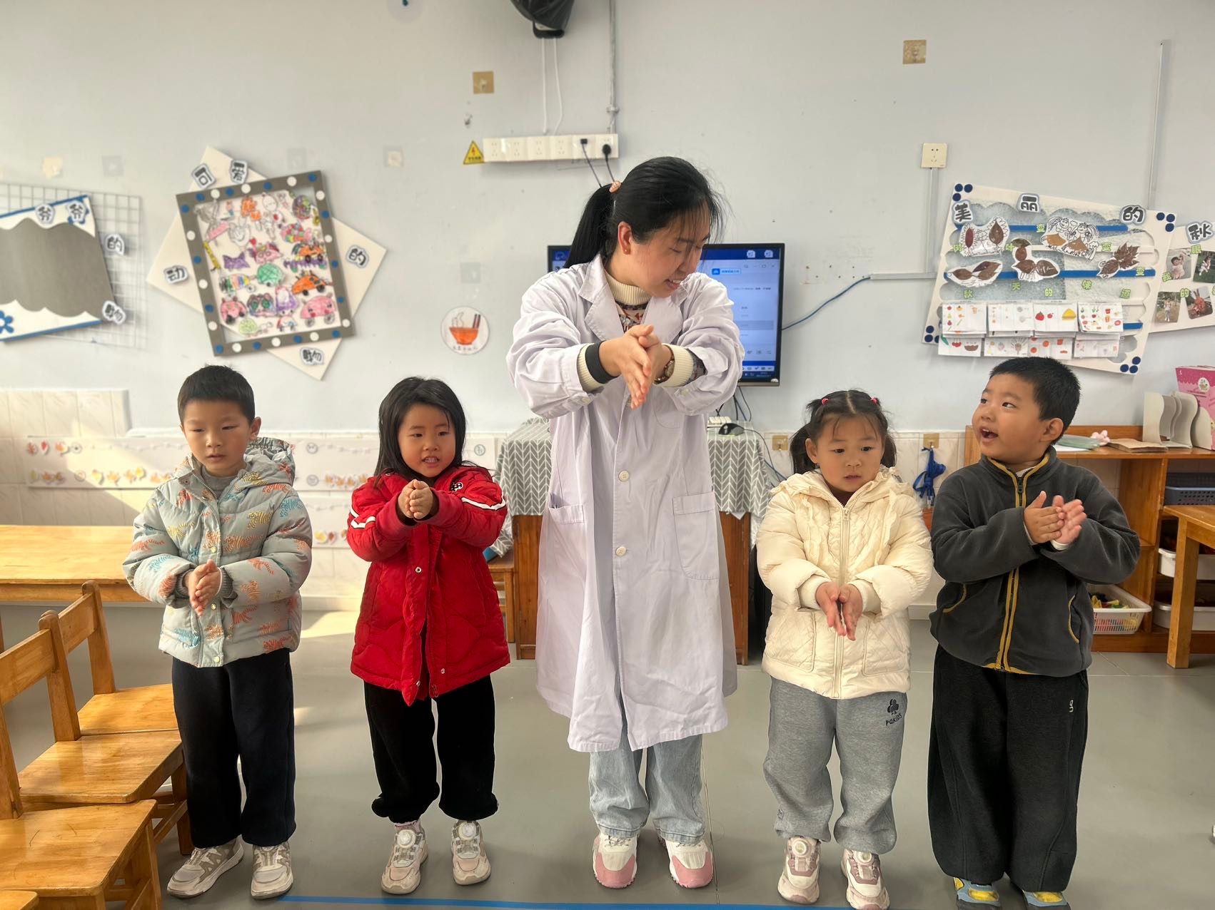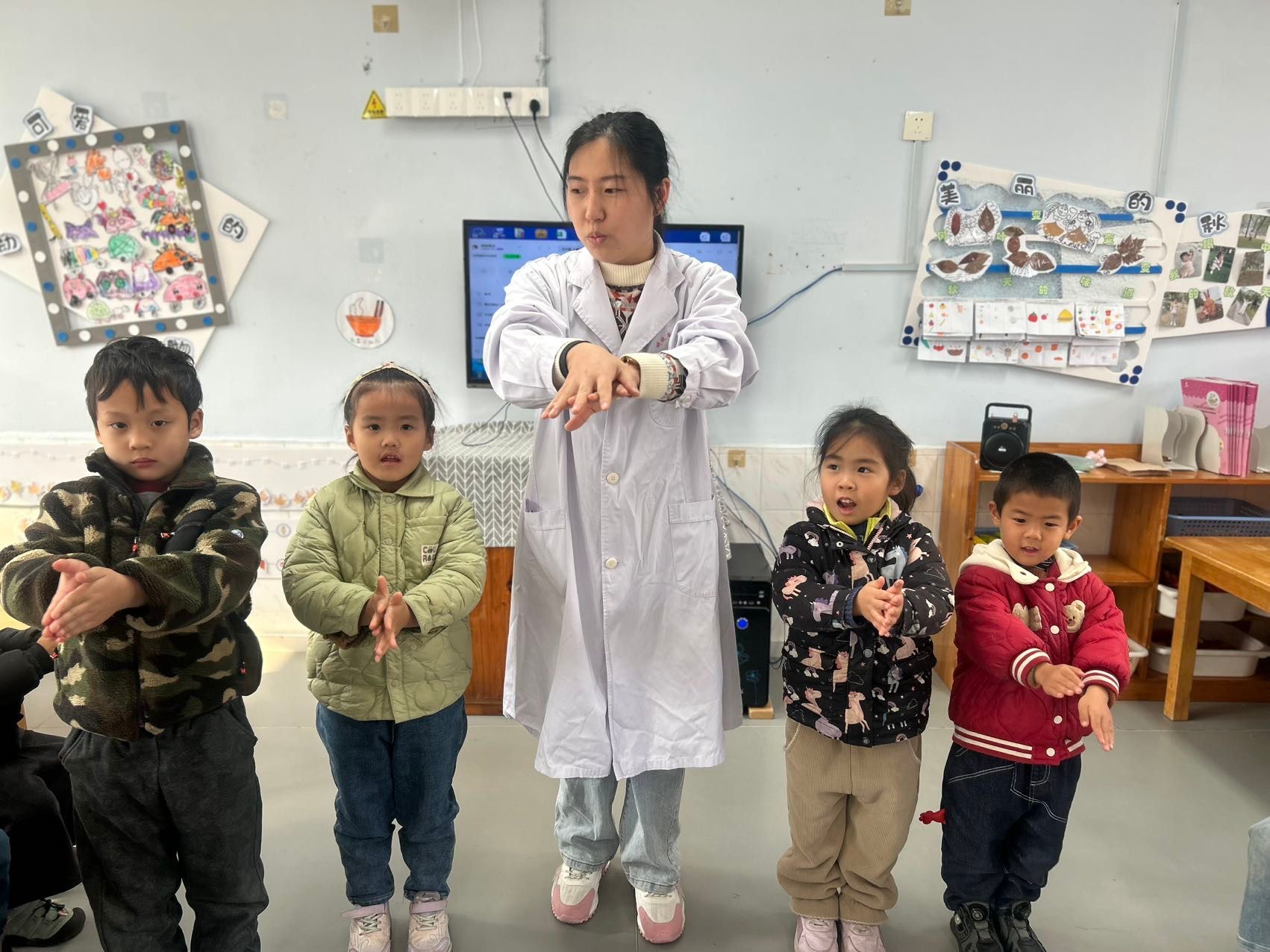 今天的活动中我们邀请了斐斐的妈妈(医院护士)来给小朋友们讲解专业的健康知识,通过有趣的情境,让孩子们掌握了打败细菌病毒方法,每次洗手要使用七步洗手法,遇到咳嗽打喷嚏时要用纸巾或者手肘来挡一下,孩子们都学的超认真哦,最终获得健康小卫士称号!