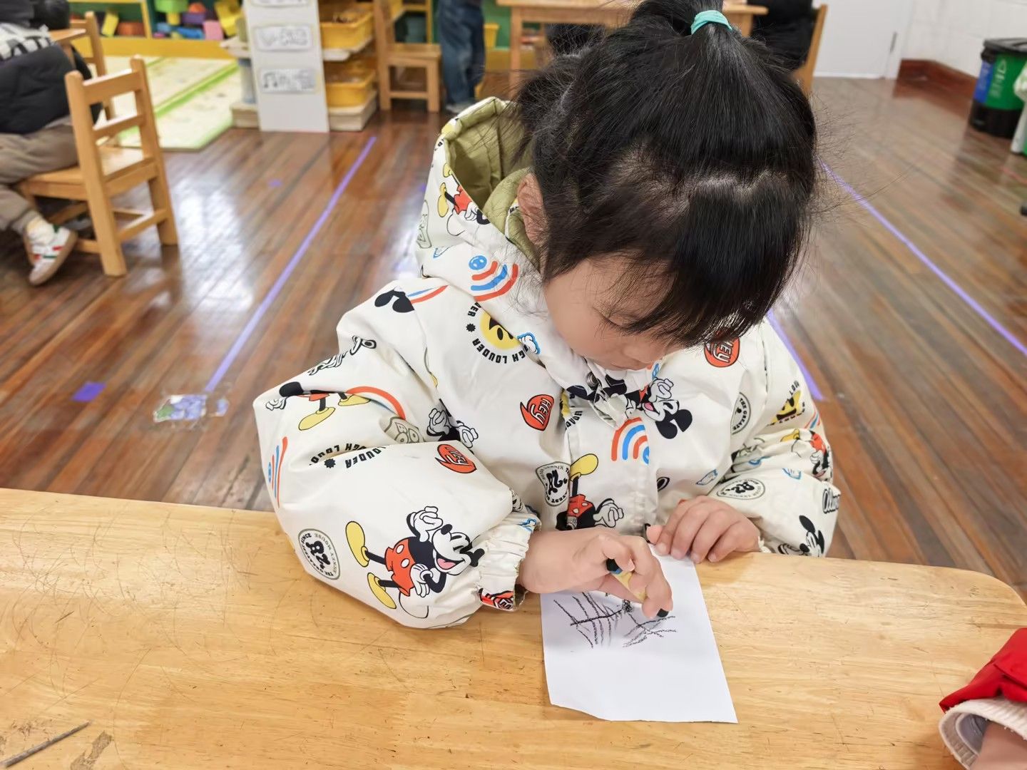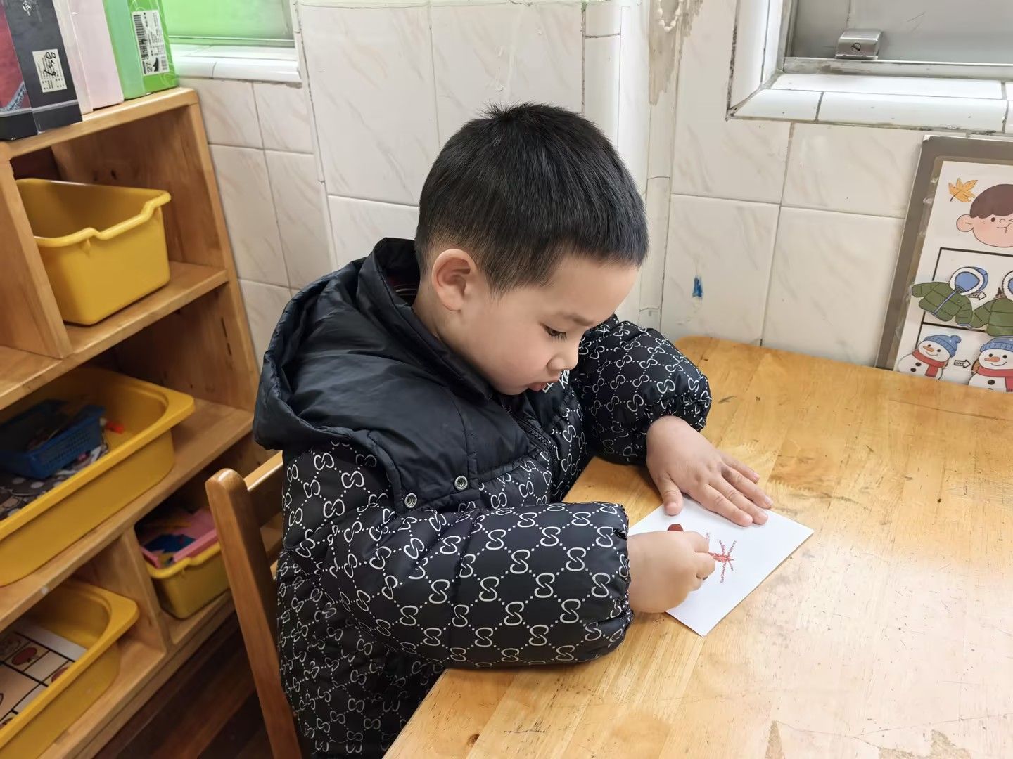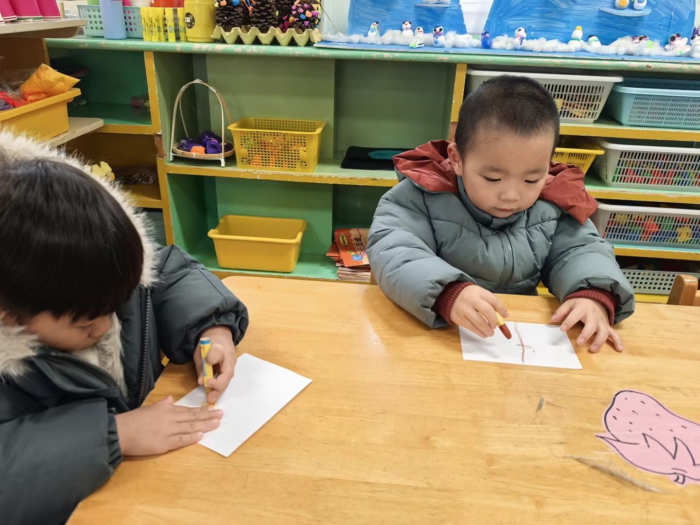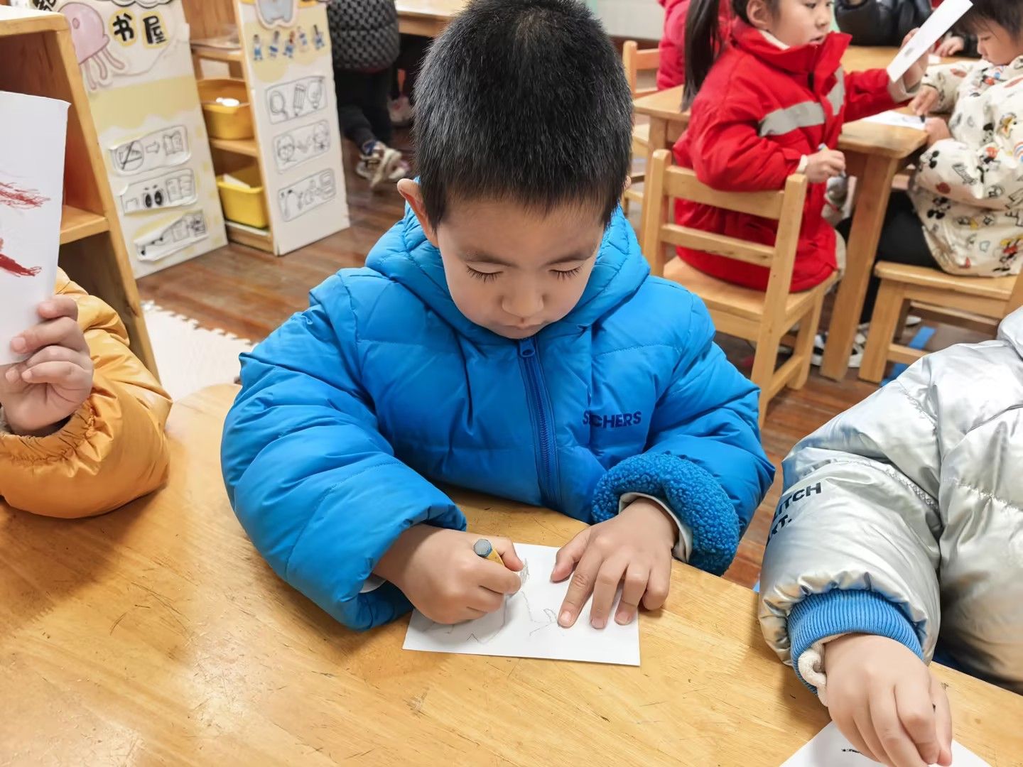 冬天到树好像和秋天不一样呢!今天小朋友们和老师一起观察冬天到落叶树,知道了大树妈妈的树干和树枝。通过观察比较,初步了解冬天的树的变化和特点。尝试用线与线的组合,表现冬天的树。